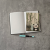 One 5" x 7" sheet of our thick 300gsm blotting paper that quickly wicks away excess fountain pen ink without smearing and preventing transfer to another page. Illustration on the non-blotting side.